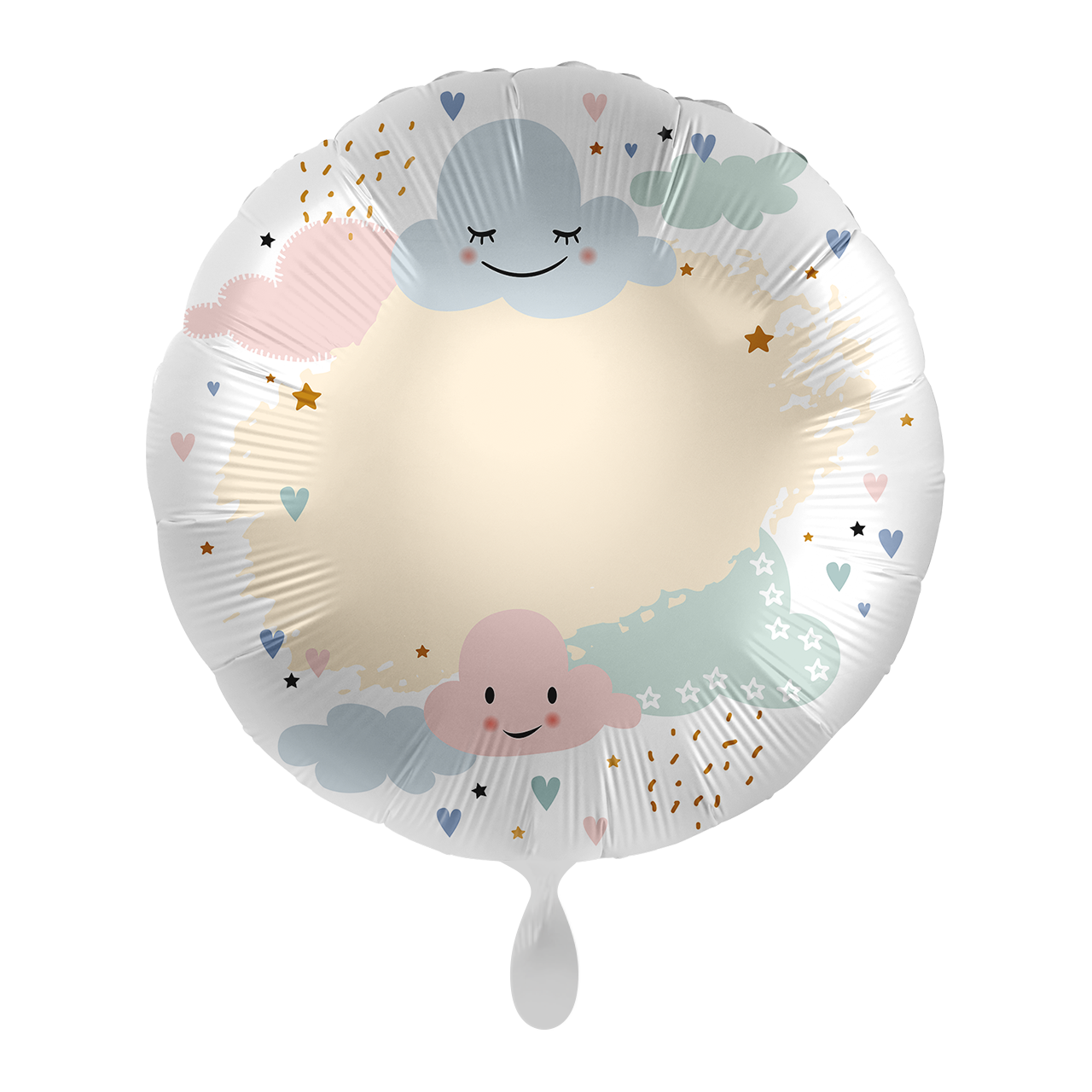 Der personalisierte Ballon (rund, 43 cm) mit süßem Wolken-Motiv ist das perfekte Geschenk für besondere Anlässe 🎉🌙. Ob zur Geburt, Taufe, Geburtstag oder einfach als liebevolle Überraschung – mit deinem Wunschtext (z. B. Name, Datum, Grußbotschaft) wird dieser Folienballon zu einem ganz persönlichen Highlight.